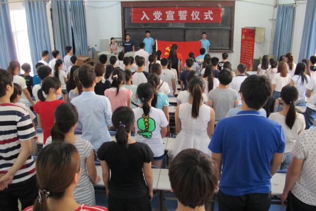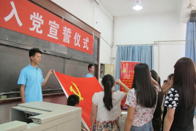 嘹亮的国际歌之后,党委组织部干部管理科科长侯涛宣读了党委组织部《关于接收预备党员和预备党员转正的审批意见》,在学生支部何瑾的带领下,19名新发展的党员整齐列队,面向鲜红的党旗,庄严地举起右手,郑重宣誓,表达了他们为党的事业奋斗终身的决心。新发展预备党员图像1303班刘洋同学代表全体预备党员发言表态。