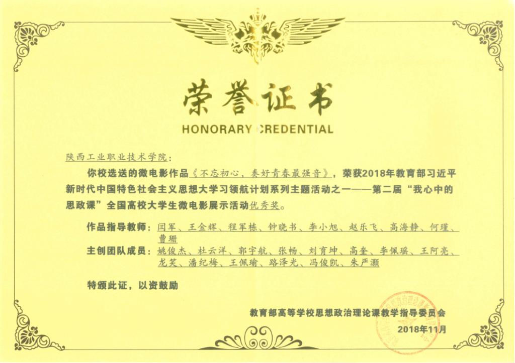 近日,由教育部高校思政课教学指导委员会主办的第二届“我心中的思政课”全国高校大学生微电影展示活动揭晓评选结果,我院信息工程学院、宣传部和思政部组队创作的《不忘初心,奏好青春最强音》荣获优秀奖。