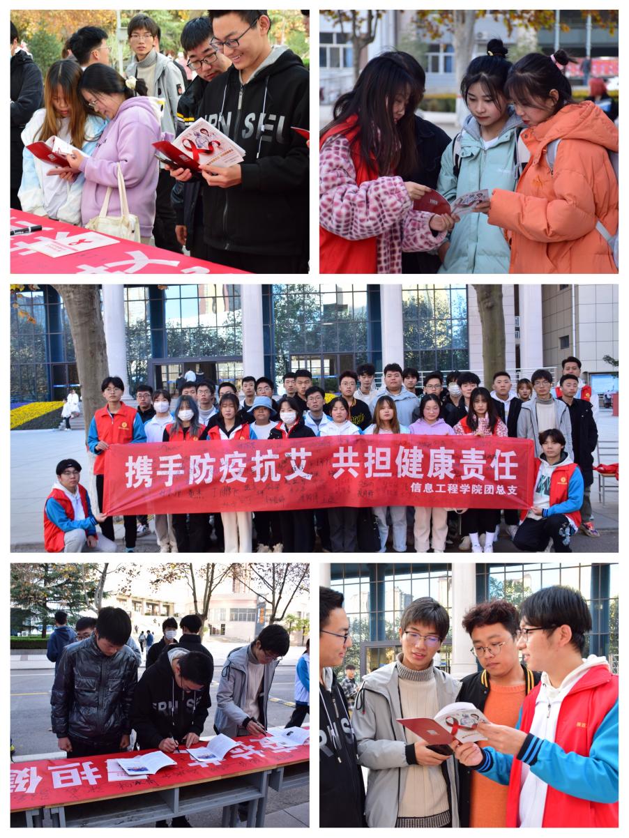 为贯彻落实国家艾滋病防治政策,提高大学生群体的艾滋病防治知识,增强艾滋病防治意识,信息工程学院以“知信行”防疫抗艾模式为切入点,全面组织开展“携手防疫抗艾 共担健康责任”预防艾滋病主题宣传系列活动。本次活动内容丰富、形式多样,包含艾滋病知识竞赛、互动式教育展示课、现场教育宣传等。