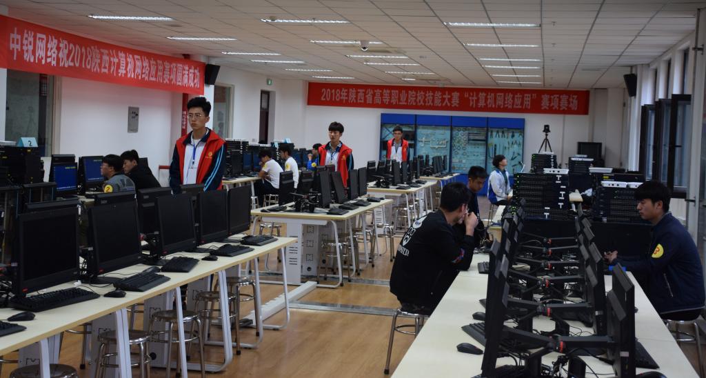 4月4日,2018年陕西省高等职业院校技能大赛“计算机网络应用”赛项比赛在我院精艺楼五层网络技术实训室举行。本次比赛由陕西省教育厅主办,我院承办,锐捷网络股份有限公司技术支持,吸引了来自杨凌职业技术学院、陕西职业技术学院、西安航空职业技术学院、咸阳职业技术学院、榆林职业技术学院、西京学院、西安思源学院及我院等24所职业院校28支队84名选手参加比赛。