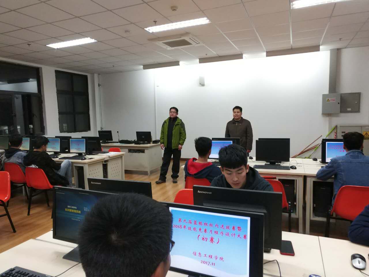 为全面配合我院开展的技能竞赛月活动,以赛促学,以赛精艺,促进教学改革,丰富学生文化生活,寓教于乐,培养学生的职场竞争意识,提高职业竞争力。11月15日晚,第十三届技能竞赛月程序设计大赛在信息学院网站开发实训室举行,何玉辉院长及殷锋社副院长亲临比赛现场指导工作。