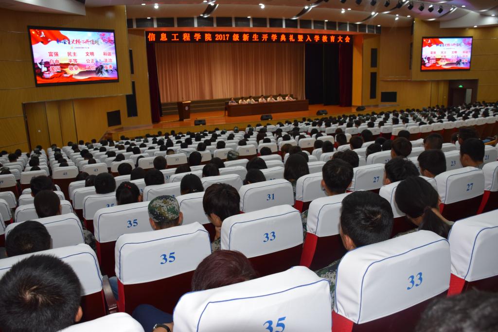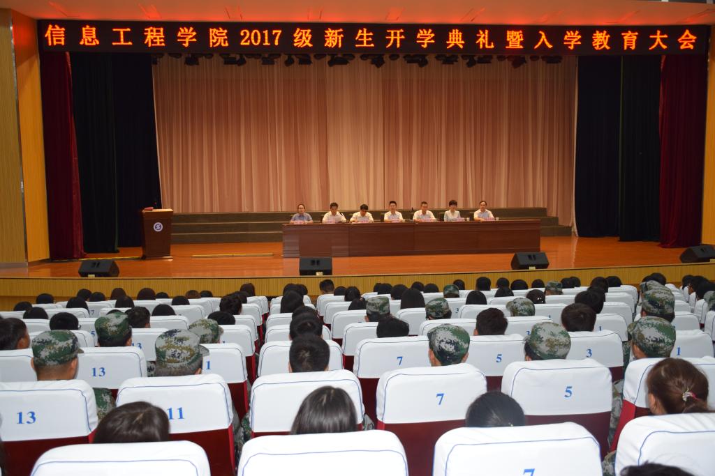 9月22日下午,信息工程学院2017级新生开学典礼暨入学教育大会在明德堂举行。出席大会的有信息工程学院院长何玉辉,院教务处副处长刘军旭、学生处副处长张科海,信息工程学院副院长殷锋社、教学办主任宋承继、学工办主任何瑾、工程训练中心主任吕阿璐以及辅导员。信息工程学院2017级全体新生参加了大会。大会由信息工程学院副院长殷锋社主持。