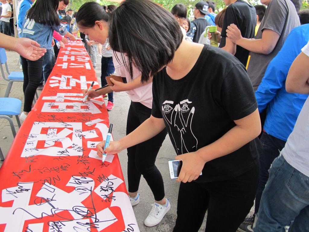 5月12日下午,信息工程学院在成才大道开展以“感恩助学,立志成才,诚信于行”为主题的签名活动。活动现场热闹有序,吸引了大批同学前来参与,同学们纷纷在横幅上签下自己的名字与诚信承诺,营造了“人人知诚信,处处讲诚信”的良好教育氛围。