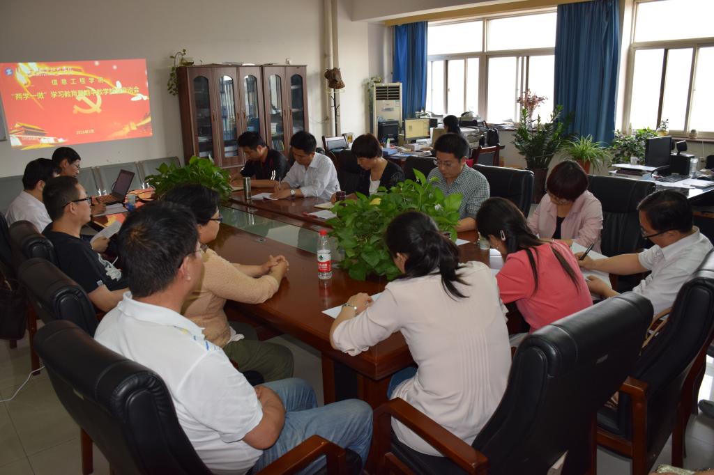 首先,由信息工程学院党总支书记闫军解读学院“两学一做”学习教育实施方案,并对信息工程学院“两学一做”学习教育做了具体安排。之后,各位党员教师结合自身工作实际,立足本职岗位交流了学习党章党规的心得体会,对学院教育、教学、管理等方面提出了意见和建议,并畅谈了对学院未来发展的建议和设想。