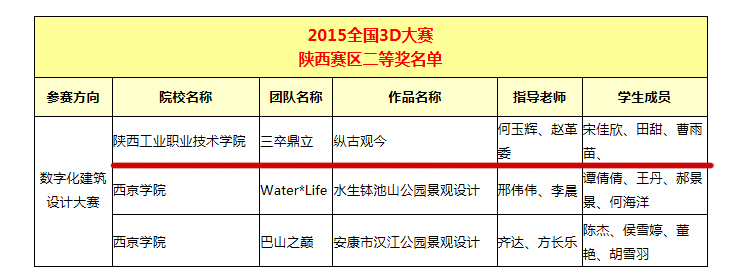 由我院赵革委、何玉辉老师指导的图形图像制作专业1303班学生李巨龙、欧文博、成林林、寇萧逸等4名同学制作的三维建筑漫游作品《大明宫》获得“数字化建筑设计大赛”陕西省赛区特等奖。该作品是学生依据西安市大明宫遗址微缩模型,历时3个多月,完成50多个场景的建模、贴图,并经过设置灯光、添加摄像机、渲染输出等过程,真实的再现了大明宫中的丹凤门、含元殿、宣政殿等主要建筑。11月份,该作品将作为陕西赛区的代表作品参加在常州举办的全国三维数字化创新设计大赛总决赛。