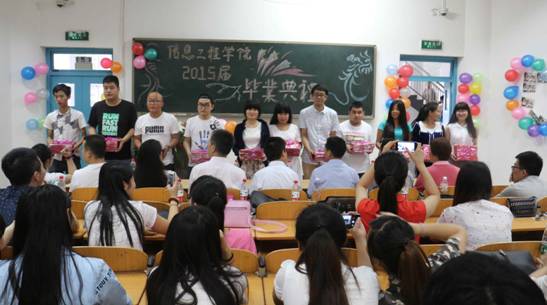 世界那么大,你要去看看。6月29日上午10时,信息工程学院2015届毕业生典礼暨毕业证颁发仪式在崇文西楼102举行。信息工程学院院长何玉辉、总支书记杜云、教学办主任刘引涛,学工办主任曹伟及全体辅导员、班主任、毕业生代表、在校生代表近200人参加了毕业典礼,典礼由杜云主持。