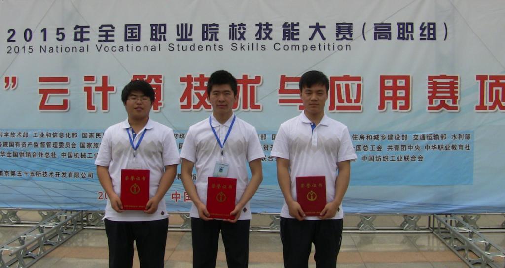 6月14日,2015年全国职业院校技能大赛“先电杯”云计算技术与应用赛项在济南市山东商业职业技术学院落下帷幕,由我院信息工程学院原建伟、李爱国老师指导的学生张驰(信管1202班)、王冲(计应1301班)、汤鹏举(软件1301班)荣获团体三等奖。我省高职院校“云计算技术与应用”赛项参赛队经过全省选拔赛和全省集训后,由我院信息工程学院院长何玉辉领队参加了国赛,我省三个高职院校参加,经过顽强拼搏、团结奋战,经过4个小时的激烈角逐,我省最终获得西北地区仅有的两个团体三等奖。
