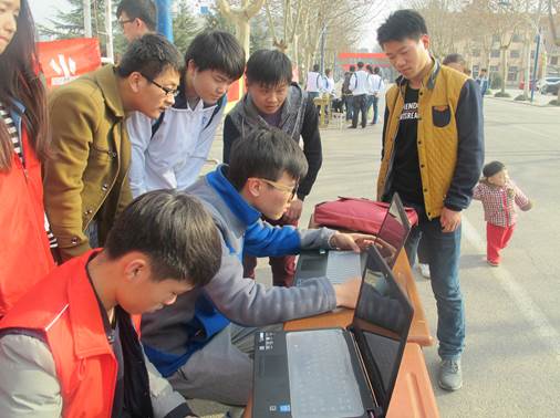 “大力弘扬雷锋精神,树立学校道德标杆”,信息工程学院于3.12日下午在成才大道举行了首届“计算机维护”志愿者服务活动。学院精选了10余名装机能力强,操作技术佳的学生,免费为学校师生提供计算机重装系统、电脑清灰及系统维护等服务。