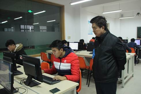 信息工程学院积极推进课程综合改革试点工作,在本次课程改革立项中共有11门课程批准立项。根据《计算机应用基础—无纸化考试系统的建设与应用》课程改革项目的建设任务安排,1月11日上午,《计算机应用基础》课改项目组在行知楼A软件测试实训室进行无纸化考试试点。本次试点抽取了信息工程学院网络1401、1402班、软件1401、1402班四个教学班级进行考试。学院王津副院长莅临指导,信息工程学院何玉辉院长、夏东盛副院长均到考试现场巡视督查。