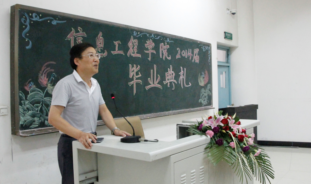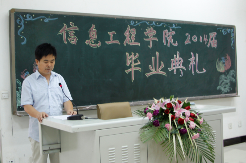 年年岁岁花相似,岁岁年年人不同。7月1日上午9时,信息工程学院2014届毕业典礼暨毕业证颁发仪式在崇文西楼102举行。学院党委副书记王天哲到会为毕业生颁发了证书,并讲话,信息工程学院领导、全体辅导员、班主任、毕业生代表、在校生代表近200人参加了毕业典礼,典礼由总支书记杜云主持。
