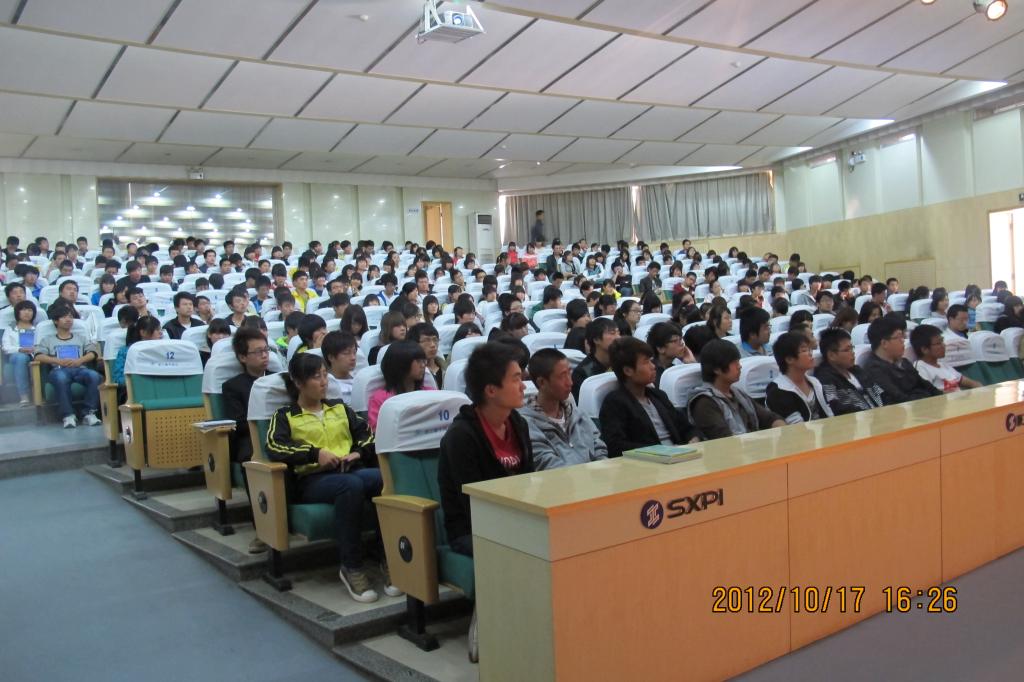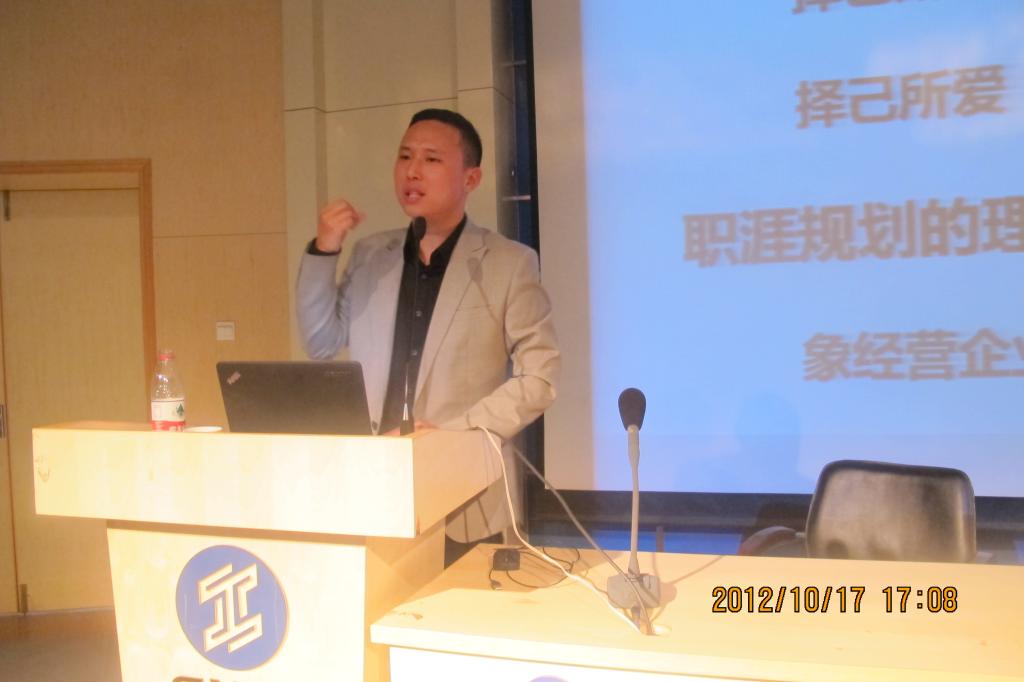 2012年10月17日下午,信息工程学院400余名同学在学术会堂参加了由浙大网新集团高级人力资源经理、浙大网新仿真实训西北区域总监张昞主讲的“漫谈职业生涯规划”讲座。讲座由党总支书记杜云主持。