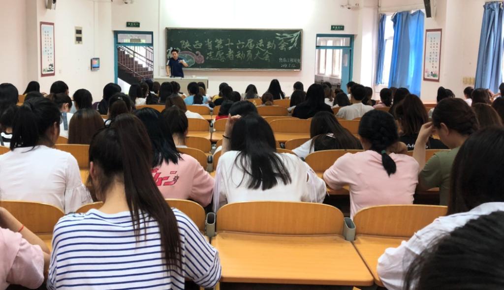 7月12日下午,信息工程学院在崇文西楼104教室召开了陕西省第十六届运动会志愿者动员大会,信息学院党总支书记闫军、志愿者负责教师杨阳以及全体志愿者共计160余人参加了大会。