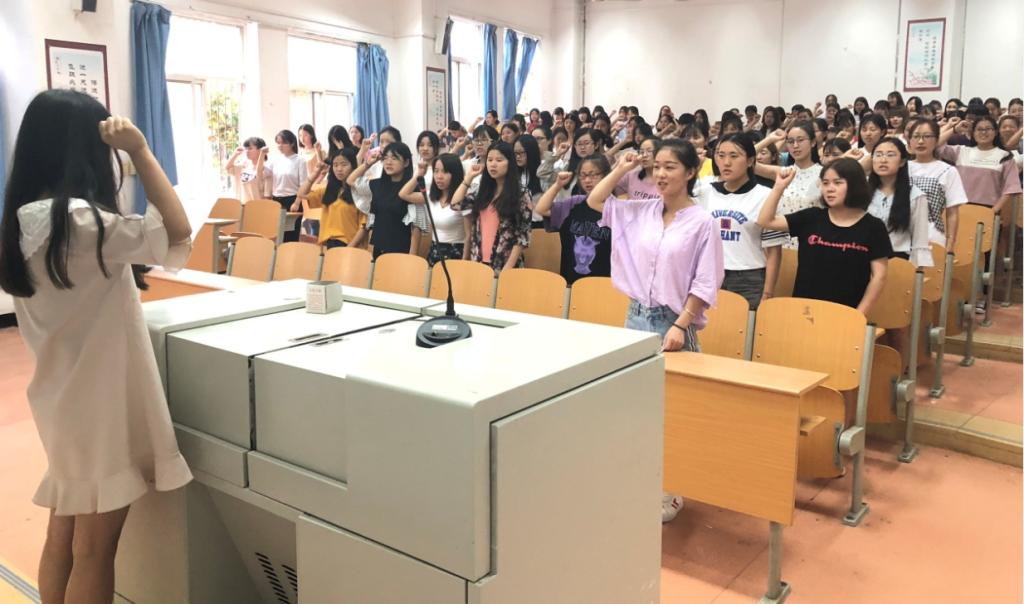 志愿者代表、电信1702班王佩瑜同学代表全体志愿者发言,她号召大家要端正态度,在社会最需要我们的时候挺身而出,贡献力量,用饱满的热情迎接排练。随后,全体志愿者举起右手,进行了庄严宣誓:“我志愿加入陕西省第十六届省运会志愿者队伍,弘扬志愿精神,奉行志愿者宗旨……。”大家立志积极排练、团结进取,全力以赴、不辱使命!