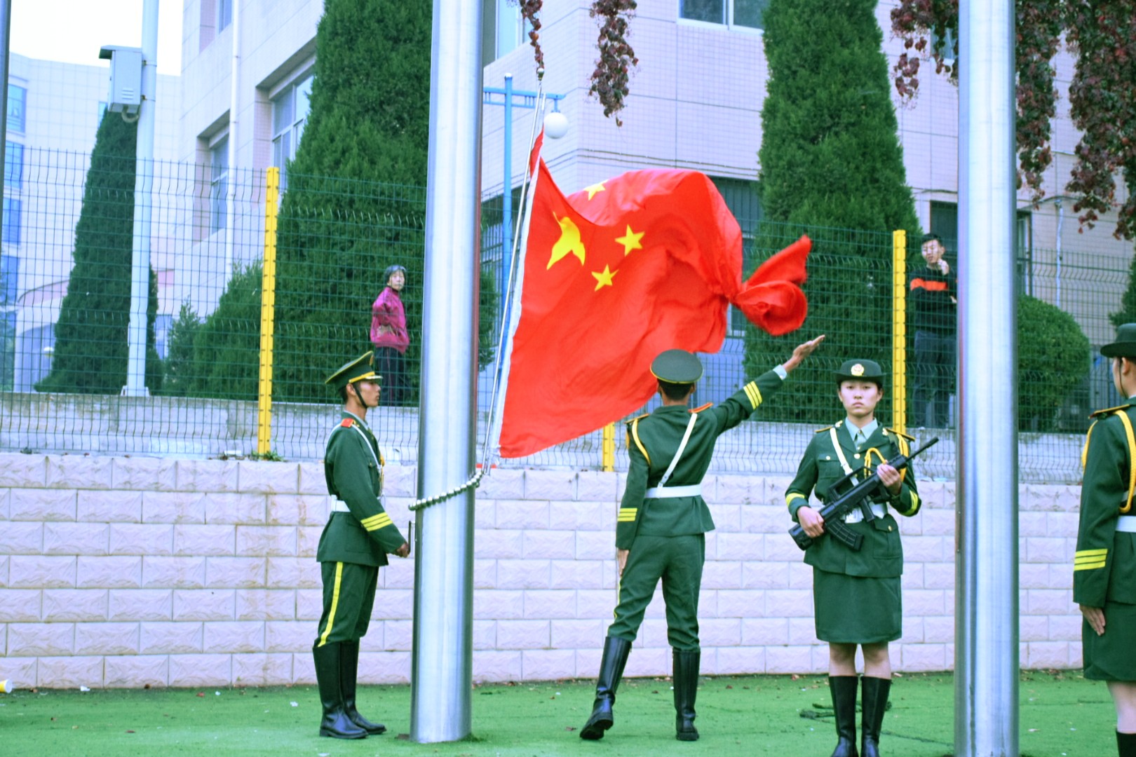 6时50分,升国旗仪式正式开始。国旗护卫队的队员们迈着铿锵的步伐,护送国旗走向升旗台。伴随着庄严的国歌声,鲜艳的五星红旗冉冉升起,全场师生肃立,行注目礼,表达了对党和祖国的无限热爱。