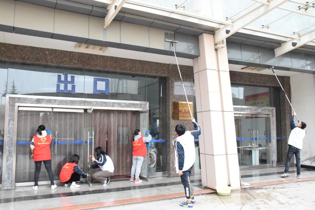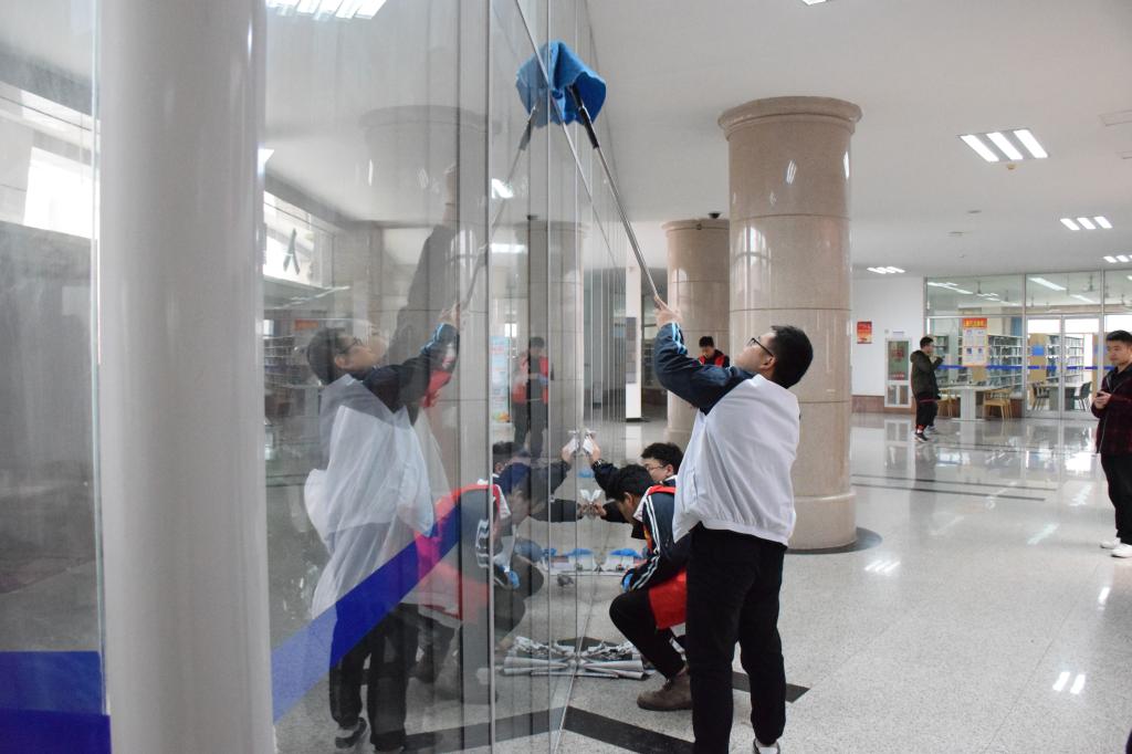 本次活动准备充分。活动开始前,信息学工办主任何瑾老师首先做了现场动员,鼓励大家发扬雷锋精神,踏踏实实做事儿。接着,志愿者们根据工作任务,合理分工。“馨暖爱心”志愿者服务大队负责图书馆的卫生清洁工作,学生会体育部负责器材室的整理打扫。50人分成4个小组,大家相互配合,有的擦玻璃,有的扫地,有的换水,有的洗抹布,干的热火朝天。志愿者们不怕苦、不怕脏、不怕累,用自己的实际行动为共同的学习家园贡献一份绵薄力量。