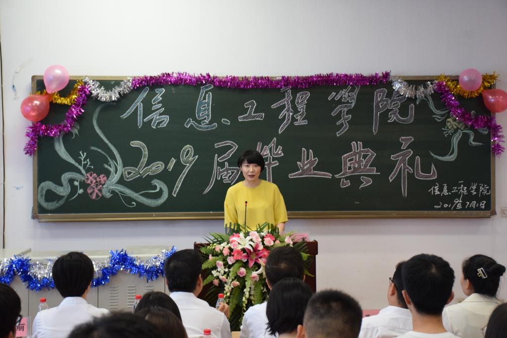 7月1日上午,信息工程学院2019届毕业典礼暨毕业证发放仪式在崇文西楼201隆重举行。信息工程学院院长何玉辉、党总支书记闫军、副院长殷锋社、教学办主任宋承继、工程训练中心主任吕阿璐、学工办主任何瑾及全体辅导员、班主任代表、毕业生代表、在校生代表共200余人参加了毕业典礼。典礼由党总支书记闫军主持。