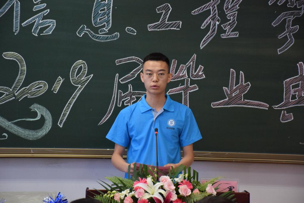 教师代表何苗对毕业生表达了美好的祝福,她叮嘱同学们要怀感恩之心,温柔而坚定,年轻而执着;不念过往,不畏将来,坚强面对未来的风雨困苦,永不言弃。软件1605班杨媛、软件1703班罗帅博同学先后作为毕业生、在校生代表发言。
