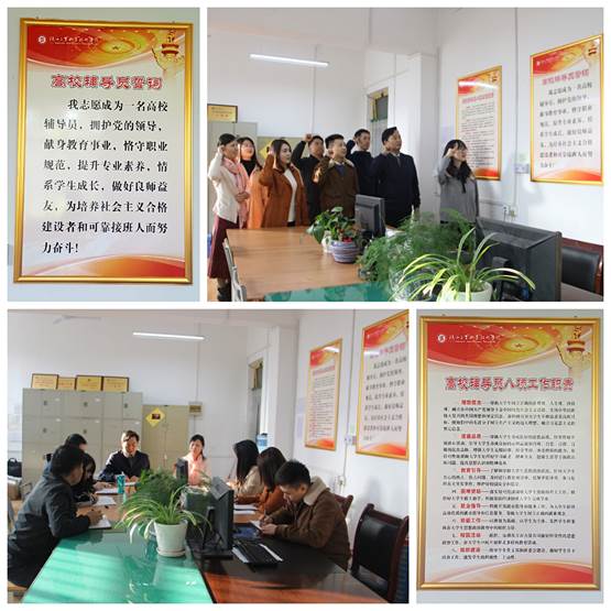 ---履职责,立足岗位做最美辅导员。组织集体学习《高校辅导员八项工作职责》,希望辅导员能以八项工作职责内容为指导,结合时代特点,坚定自身发展的理想信念,立足岗位,履职尽责,坚持把一线工作做好,做强、做优,辅导学生成为合格的社会主义建设者和接班人,成为“工作有方法、办事有成效、学生很满意”的最美辅导员。