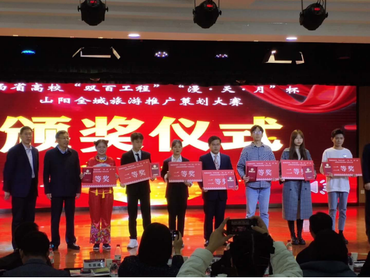10月31日,陕西省高校“双百工程”“漫·天·月”杯山阳全域旅游推广策划大赛总决赛在西北政法大学长安校区举办。我院信息工程学院数字媒体应用技术专业 “六个臭皮匠”团队(胡洋铭、贺煜、杨文婷、郭一玮、党东旭、李珂越)荣获二等奖,“打卤面”团队(李佳豪、胡新鹏、张敏敏、邓亚丽、辛育婷)荣获优秀奖,指导教师赵强、曹珊被评为“优秀指导教师”,数字媒体应用技术专业19级胡洋铭、贺煜、胡新鹏、邓亚丽被山阳县聘为“旅游宣传大使”。