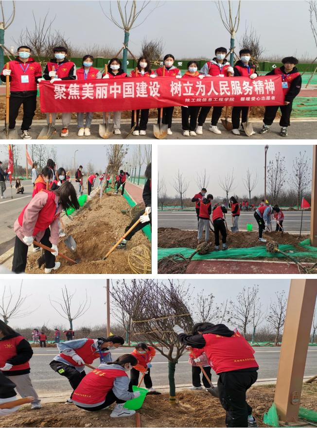 春回大地,万物苏醒。为大地穿上绿色的新衣,展信息学子昂扬的风华,3月13日,信息工程学院馨暖爱心志愿者服务队与咸阳市慈善扶贫协会公益志愿者分会合作,以“聚焦美丽中国建设,树立为人民服务精神”为主题,在咸阳开展植树实践活动。