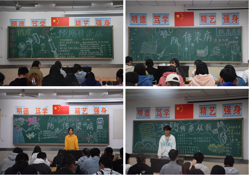 为提升学生对传染病的防护意识,普及传染病的传播途径,根据《陕西省学校公共卫生突发事件第3号预警》文件精神,对标《陕西工院2021年秋季传染病防治知识健康教育工作安排》的要求,10月25日晚,信息工程学院在大一晚自习教室开展了“关注学生健康,提升防护意识”的主题班会。