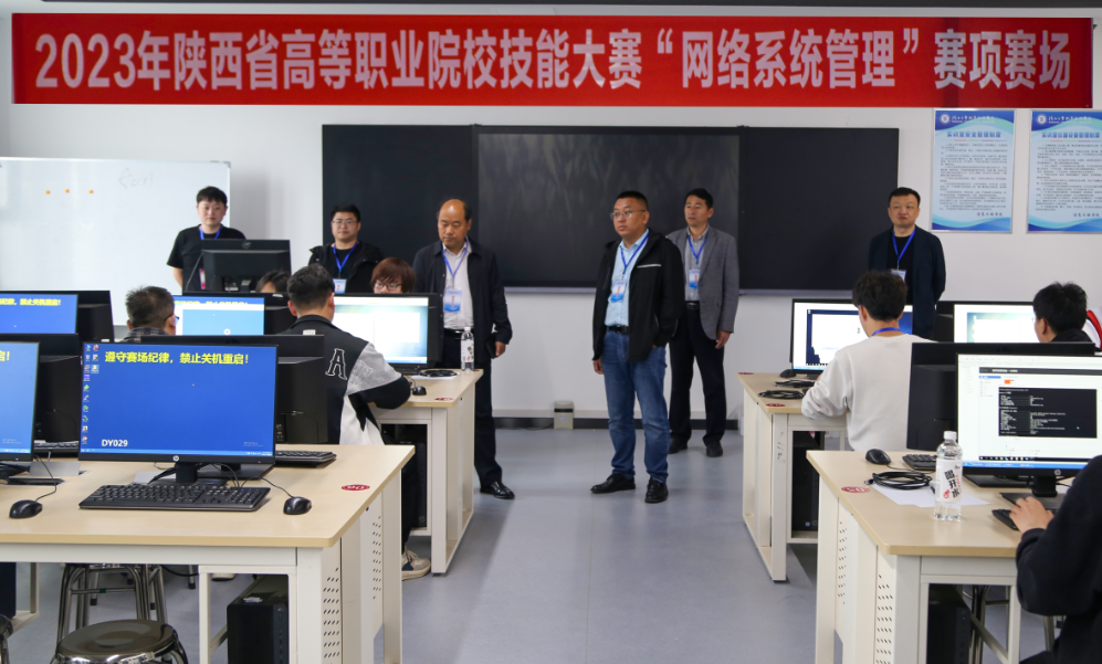2023年5月7日,陕西省高等职业院校技能大赛“网络系统管理”赛项在我校经开校区举行。本次竞赛由陕西省教育厅主办,我校承办,福建中锐网络股份有限公司技术支持。来自杨凌职业技术学院、陕西国防工业职业技术学院及我校等19所高职院校共34支队伍参加比赛。