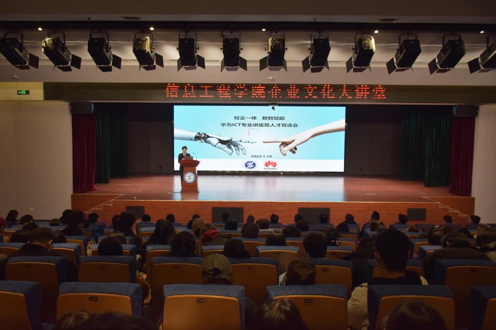 为精准做好学生就业指导工作,帮助学生明确就业方向,提升就业竞争能力,实现高质量就业。1月10日下午,信息工程学院在经开校区图文报告中心(二)举办了华为ICT专业讲座暨人才双选座谈会。学院特邀华为技术有限公司(简称:华为)、ICT人才生态(陕西)联盟以及16名华为生态企业代表联合开展ICT专业讲座。信息工程学院院长白国政、辅导员以及2021、2022级300余名学生代表共同出席活动。