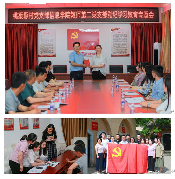 为认真落实学校党纪学习教育实施方案,扎实开展党纪学习教育,信息工程学院党总支教师第二党支部紧紧围绕“学纪、知纪、明纪、守纪”的目标要求,5月18日,信息工程学院教师第二党支部赴淳化铁王镇桃渠塬革命旧址,与共建支部桃渠塬村党支部开展“推进党纪学习教育,助力美丽乡村振兴”主题党日活动。
