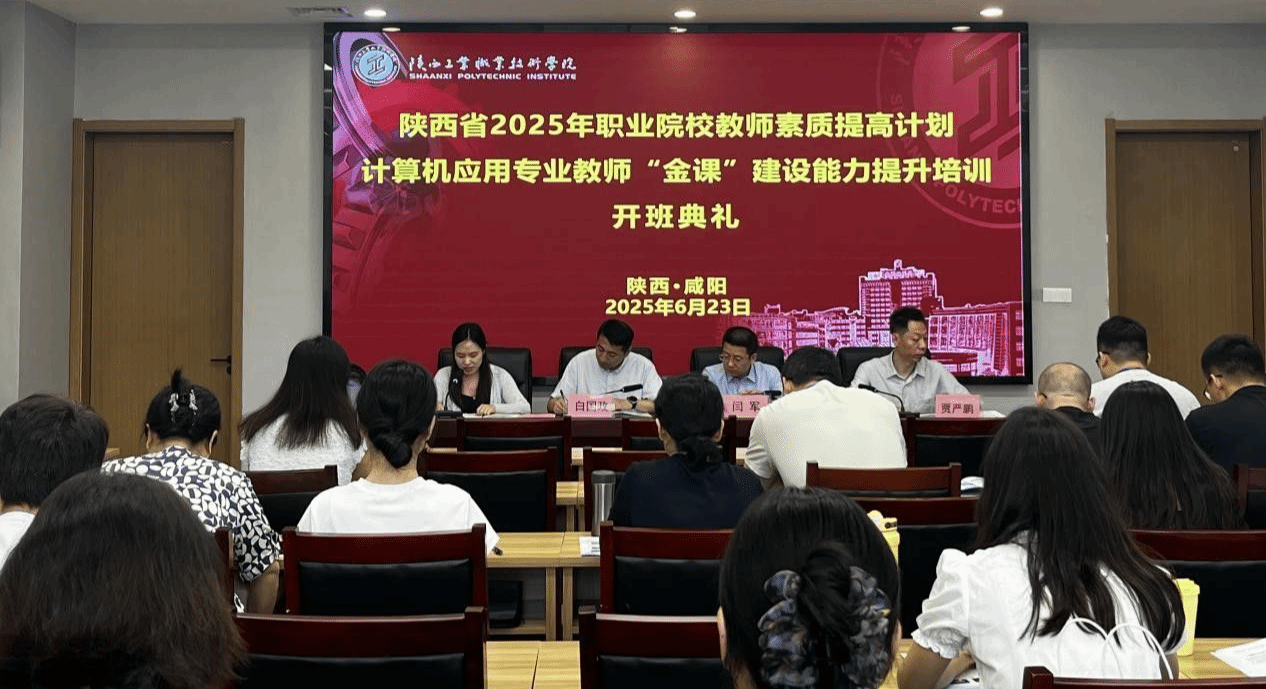 2025年6月23日上午,陕西省2025年职业院校教师素质提高计划——计算机应用专业教师“金课”建设能力提升培训开班典礼在我校经开校区隆重举行。继续教育与培训学院院长闫军、信息工程学院院长白国政、继续教育与培训学院副院长贾严鹏以及培训管理人员、全体参训学员共40余人参加了开班仪式。仪式由继续教育与培训学院副院长贾严鹏主持。