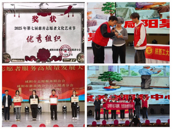 作为咸阳市慈善志愿领域的年度盛会,本届艺术节以“活力青春·益起飞扬”为主题,既设成果展评,也安排特色展演。馨暖爱心志愿者服务队以原创小品《“聪明”手机不聪明》亮相舞台,用幽默方式演绎基层志愿场景,让观众在笑声中感受到科技助老的温度。除文艺汇演外,在颁奖环节,馨暖服务队个人奖项同样亮眼:2024级学生朱菓涵和张轩因全年参与志愿服务,个人志愿总时长分别为290小时和110小时,获评咸阳慈善协会公益志愿者分会年度“优秀志愿者”;宣传组组长2024级胡诗羽和马思雨则因运营团队新媒体矩阵、原创发布15篇服务纪实,摘得咸阳慈善协会公益志愿者分会年度“宣传先进工作者”。