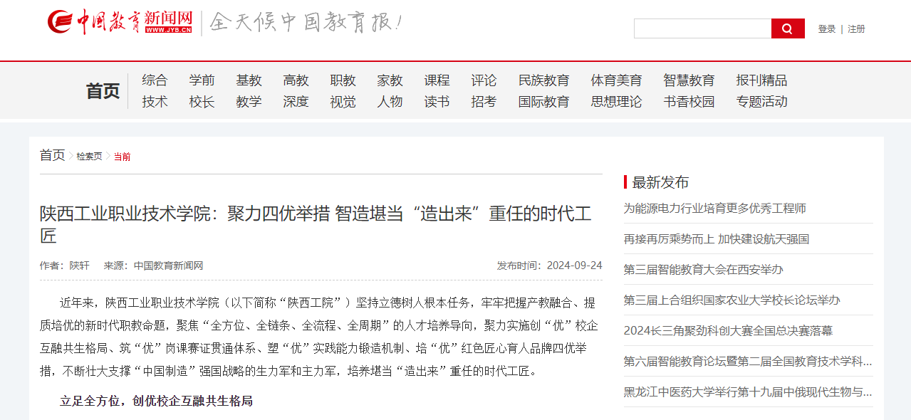 近年来,陕西工业职业技术学院(以下简称“陕西工院”)坚持立德树人根本任务,牢牢把握产教融合、提质培优的新时代职教命题,聚焦“全方位、全链条、全流程、全周期”的人才培养导向,聚力实施创“优”校企互融共生格局、筑“优”岗课赛证贯通体系、塑“优”实践能力锻造机制、培“优”红色匠心育人品牌四优举措,不断壮大支撑“中国制造”强国战略的生力军和主力军,培养堪当“造出来”重任的时代工匠。