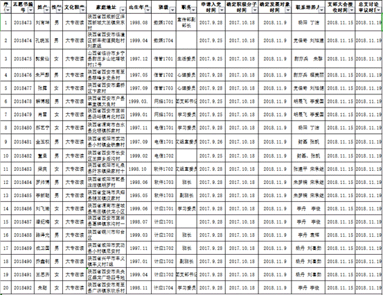 经过一年的考察培养,附件中20名预备党员(均为2017级学生)在思想、学习、工作等方面表现良好,能以党员标准严格要求自己,信息工程学院学生第一党支部拟给予按期转正,2019年11月17日支部已上会讨论,现将基本情况公示如下,公示期从2019年11月18日至11月22日。